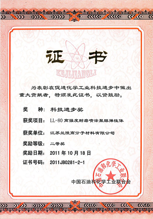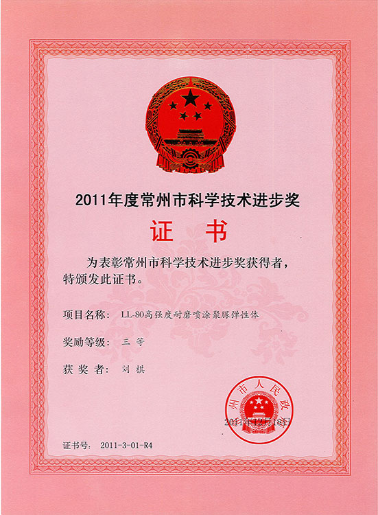 LP3068國(guó)家火炬計(jì)劃 聚脲市科技進(jìn)步三等獎(jiǎng) 2020年度江蘇省科學(xué)技術(shù)獎(jiǎng)證書(shū)