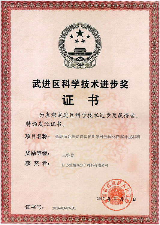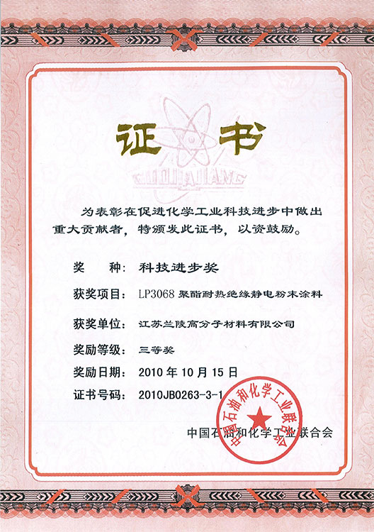 LL-80中石化科技進(jìn)步二等獎(jiǎng) 粉末科技進(jìn)步獎(jiǎng)證書(shū) 低表面處理鋼管用紫外