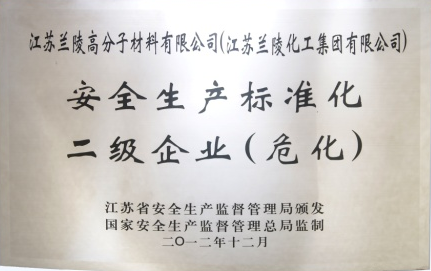 公司本著“安全第一,預(yù)防為主”的安全生產(chǎn)方針。逐步推行現(xiàn)代安全管理,重視員工在作業(yè)中的安全和健康,成立有公司安全生產(chǎn)領(lǐng)導(dǎo)小組、明確有安全歸口管理部門、配備有專兼職安全管理人員,安全生產(chǎn)管理網(wǎng)絡(luò)健全,制定有各級(jí)安全生產(chǎn)責(zé)任制、安全生產(chǎn)管理制度,職能部門職責(zé)明確,并獲得了常州市安全生產(chǎn)監(jiān)督管理局頒發(fā)的《安全生產(chǎn)標(biāo)準(zhǔn)化證書》。